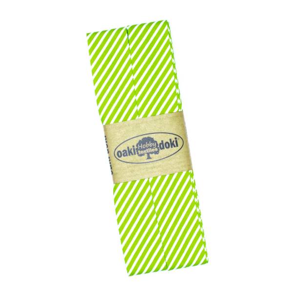 Baumwoll Schrägband Oaki Doki Streifen 3 m limegrün