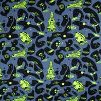 Baumwolljersey Raumschiffe neon dunkelgrau