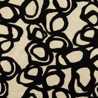 abstrakte Muster in orange auf naturfarbenem Grund verleiht dem Stoff eine ausdrucksstarke und zeitlose Optik.