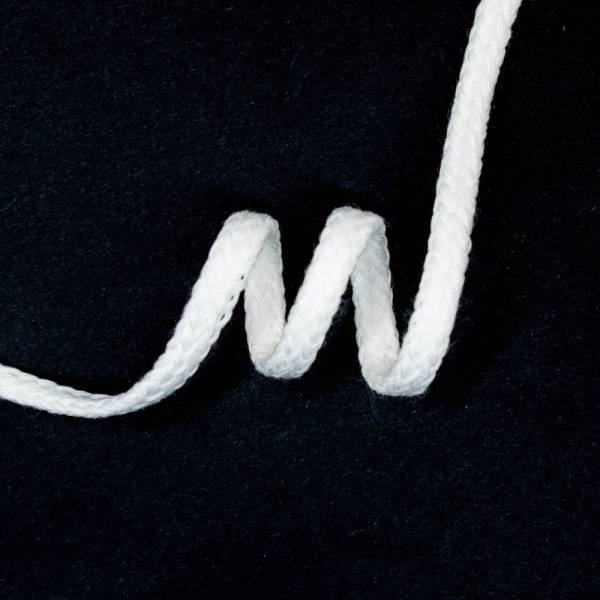 Flaches Hoodieband in weiß. Die Kordel besteht aus Tencel und ist 6 mm breit.